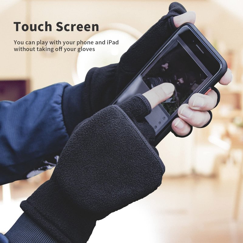 - 2 -in- 1 Convenient Flip Design: The convertible fingerless gloves with flip top design , can be folded back and fastened with magic stickers when not in use. Easy converts from warm mittens to fingerless gloves. And the thumb hole designed, convenient to wear without taking off gloves while running, jogging, cycling, hiking, ice fishing, snowmobiling, dog walking, shooting pictures and more winter outdoor activities.