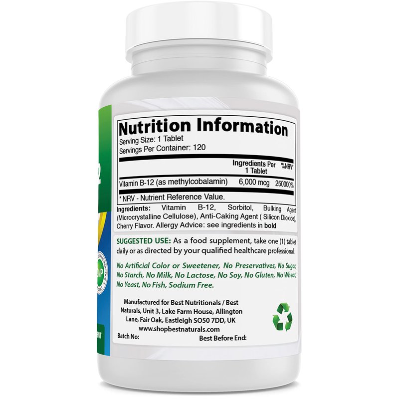 Best Naturals Vitamin B12 6000 mcg 120 Tablets