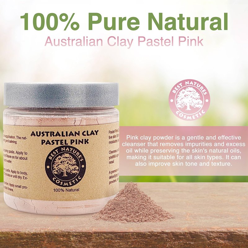 Best Nature's Australian pink clay is a gentle exfoliant that can help to remove dead skin cells, impurities, and excess oil from the skin's surface. This Australia's most celebrated clay wraps the skin in moisture, improving the texture and appearance of the skin, leaving it feeling soft and smooth.
