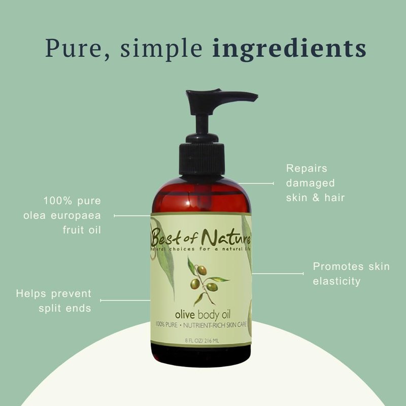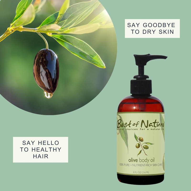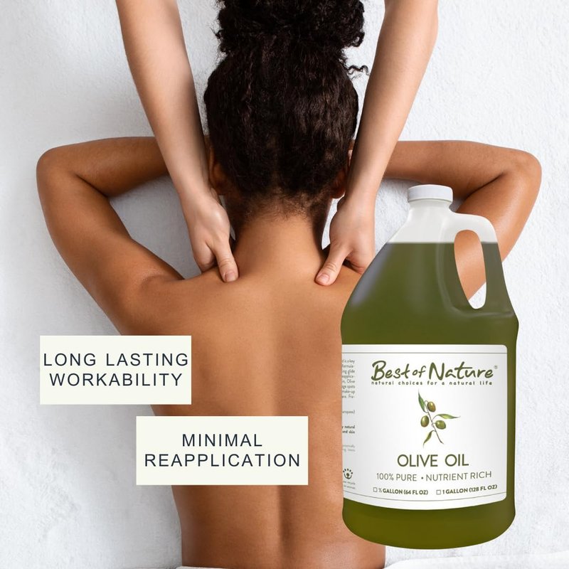 Best of Nature 100% Pure Olive Massage & Body Oil - Cold Pressed, Unscented Moisturizer for Skin & Hair, Bath Oil, Bulk Size