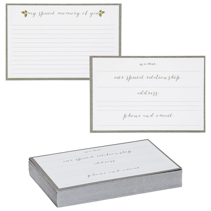 - Reliable Quality: Our memorial cards are printed on cardstock paper; the back of each share a memory card has blank fields for guests to fill in their name, address phone, email, and relationship