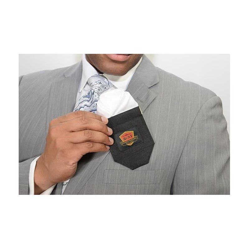 The Best Pocket Square Holder is a light weight durable product designed to HOLD THE FOLD of any pocket square or handkerchief permanently inside the breast pocket of a suit, tuxedo, sport coat or vest for work or a one time occasion. It is an essential for every man to have in his closet. "It is a suit jacket's BEST Friend!" Men can now maintain a professional, classic, trendy or formal look by following four easy steps. Just simply SELECT the pocket square or handkerchief of choice from your collection. STYLE the pocket square with a custom fold from our "How To" section of the website. SECURE the pocket square by squeezing the Best Pocket Square Holder open at the top and inserting the styled and folded pocket square. Then finally, INSERT the Best Pocket Square Holder in your pocket to maintain your style all day. The As Seen On Shark Tank "Best Pocket Square Holder" should be in the closet of ALL men. Order yours today and begin your fashion journey!