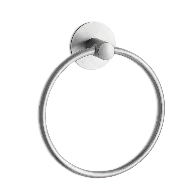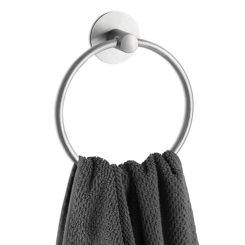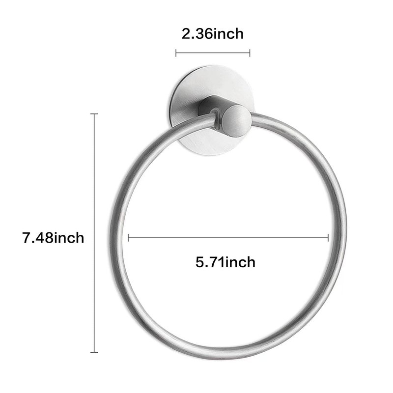 - 【CONCISE DESIGN】With modern concise design, the self adhesive towel ring looks awesome and can be used for different bathroom decor. The concise design makes the brushed nickel adhesive towel holder much more beautiful and elegant.