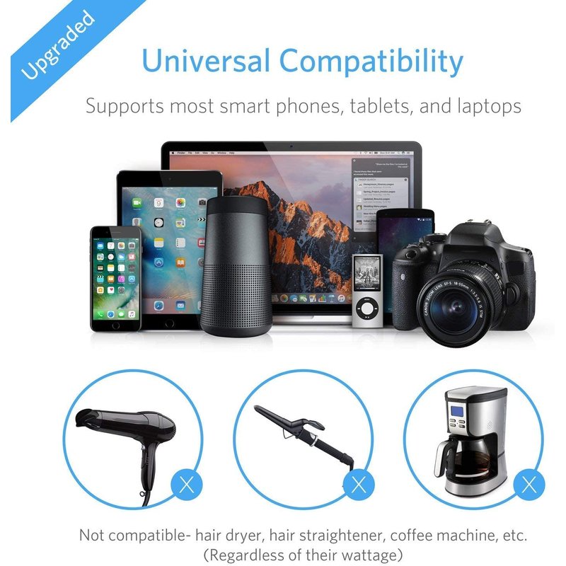 - 24-month warranty & safety guaranteed: NRTL safety tested and upgraded hardware provides complete protection for you and your devices. Comes with over-current, over-load, over-heat and short-circuit protections. Note: USB outputs are completely isolated from the AC power to prevent all your devices from being damaged
