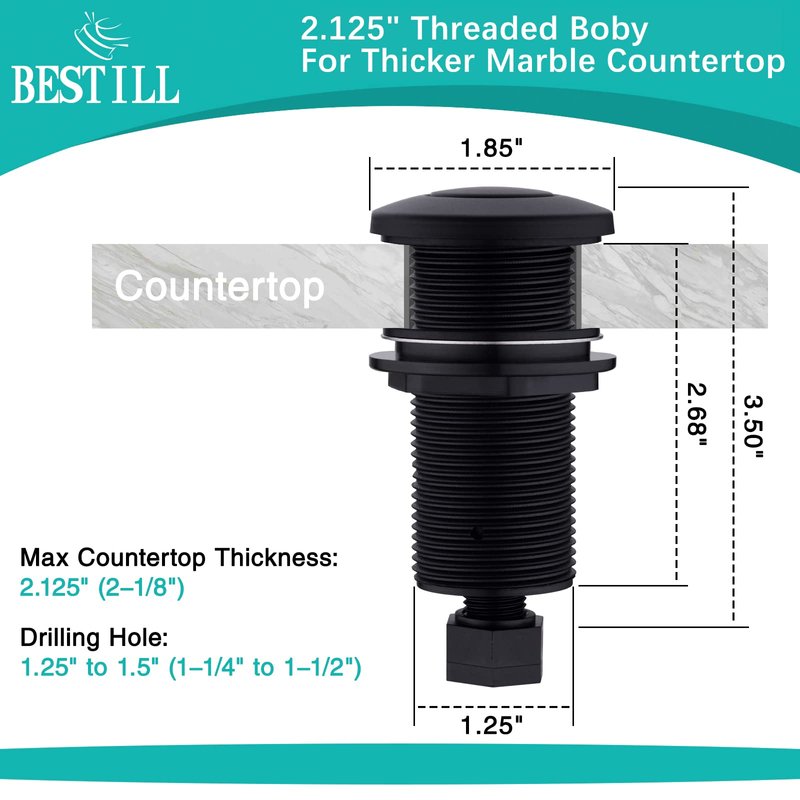 - EASY TO INSTALL - Garbage disposal switch can be mounted easily to any countertop or sinktop by drilling a 1-3/8-inch diameter hole. Moreover, the 3-inch extended body allows you to install on thicker counter top with ease(but thinner than 2-1/4-inch).