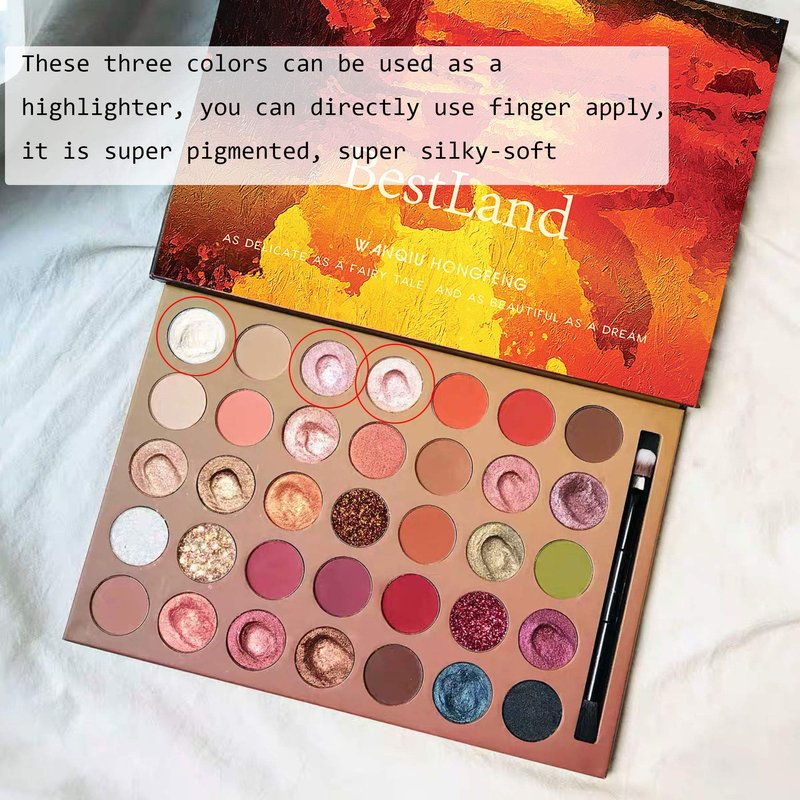 - ★35 Colour Eyeshadow Palette: Includes soft creamy eyeshadow Metallic Matte Shimmer Glitter Ultra chunky pressed glitter eyeshadows, each eye shadow can be used alone or mixed with matte eye shadow to make eyes more vivid, rich three-dimensional sense