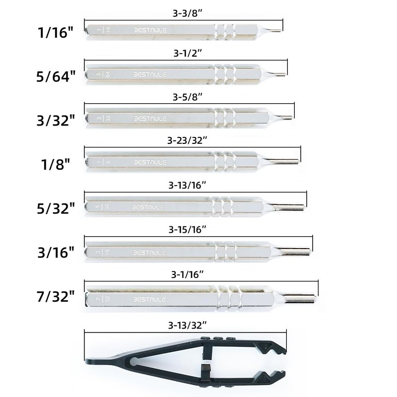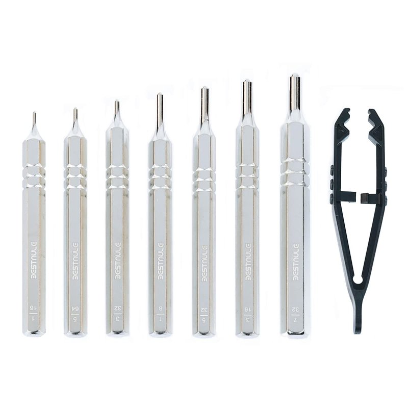- 🧰【All-IN-1 Set】: Including everything you need to get started. Coming with 8 Pcs punch set. 8 Pcs roll pin punches: 1/16, 5/64, 3/32, 5/32, 3/16, 7/32 and 1 tweezer.