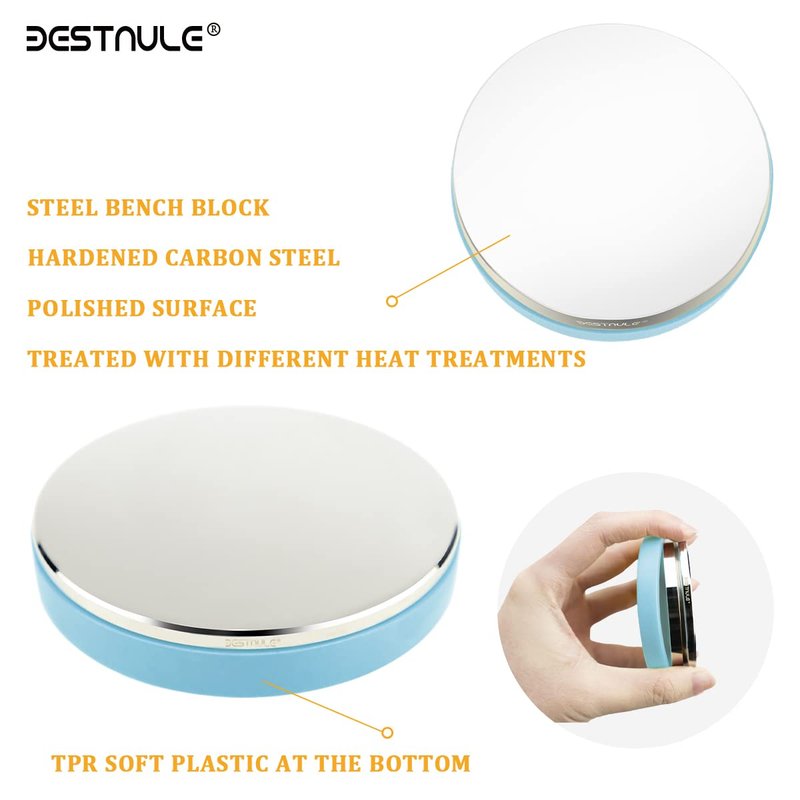 BESTNULE Professional Steel Bench Block, Covered with TPR Soft Plastic at The Bottom, Metal Stamping Table Mirror, Polishing with Chrome Plating for Jewelry Stamping Tools, (Dia: 3”, H: 19/32”)