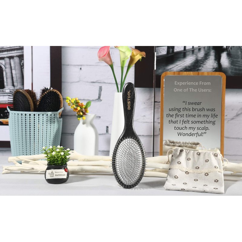 BESTOOL Hair Brush, Paddle Detangler Brush with Metal Bristles for Women/Men/Kids Detangling & Massaging, Anti Static, Best for All Hair Types Wet & Dry DailyUse