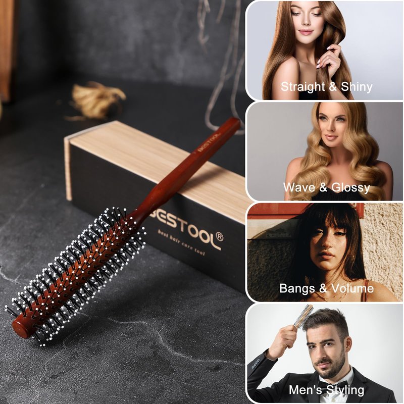 BESTOOL Small Brush for Short and Medium Hair, Blow Drying, Men's Beard Styling, Professional Smoothing and Curling Brush (Reddish brown)