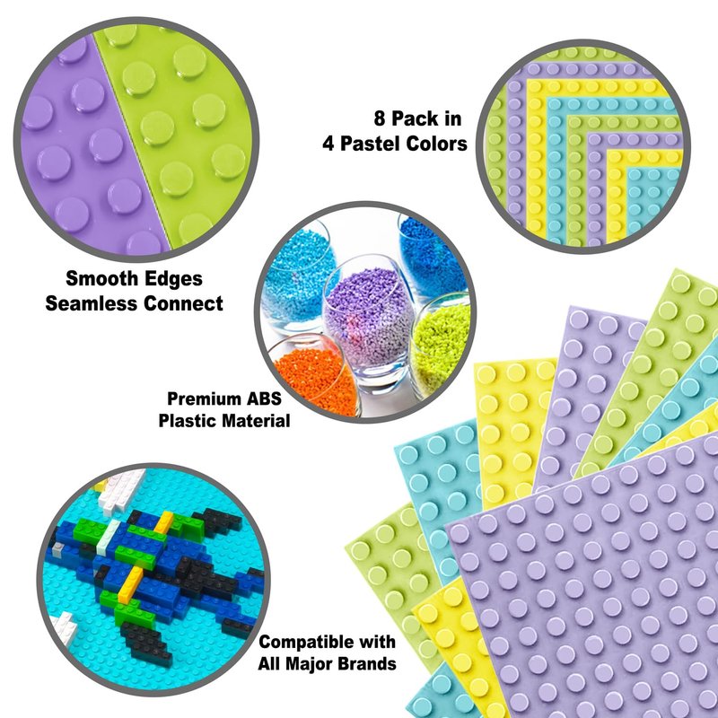 Bestoyz Building Bricks Baseplates Multipack, 32x32 Stud, 8 Pack of Base Plates in Pastel Color, Base for Building Blocks Creations, 10x10 in. (25.5x25.5 cm)