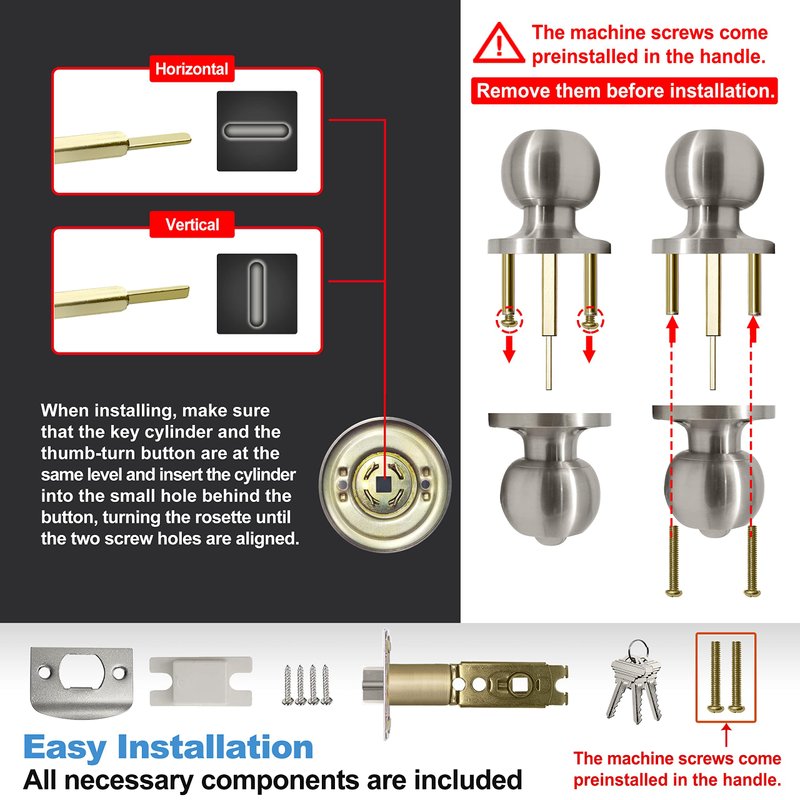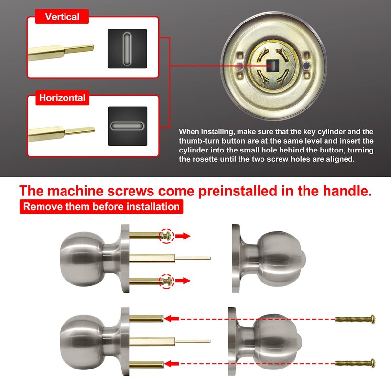 - Reminder: The machine screws come preinstalled in the handle. Please remove them before installation