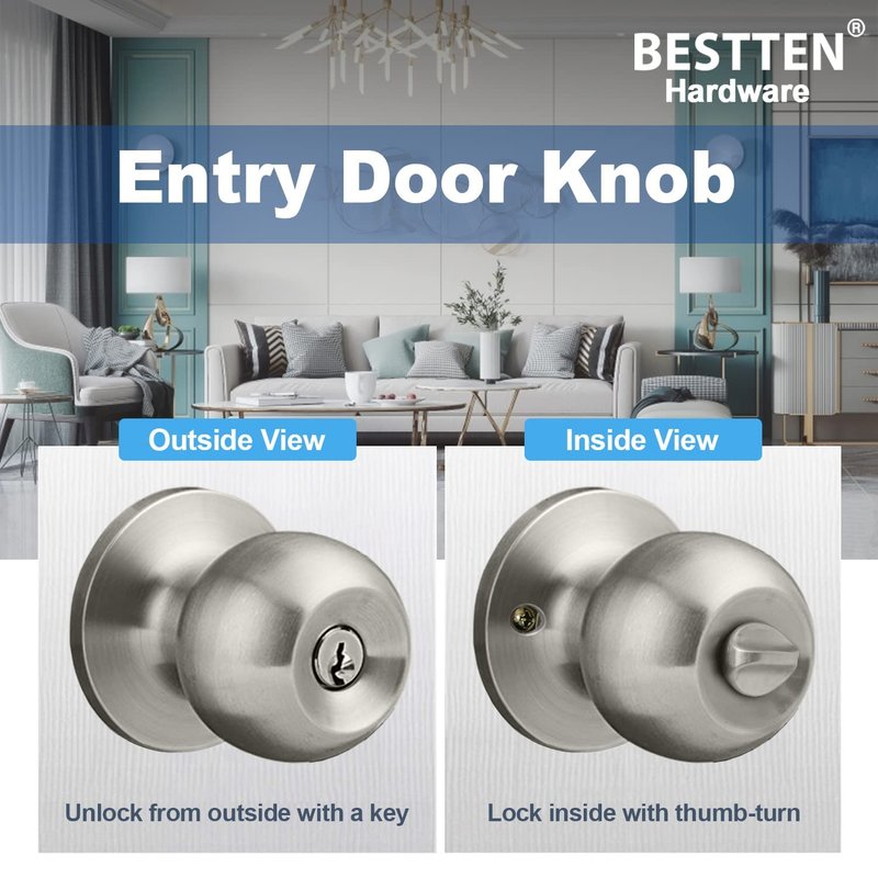 BESTTEN entry knob offers added security and strength (compared to interior door knobs).