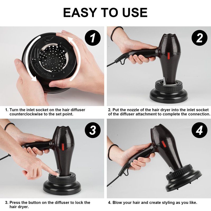 - STURDY AND DURABLE: Makes curly hair styling easier. This hair blower diffuser is made of high-quality ABS material, which is safer and more heat-resistant. Simply rotate the top of the diffuser attachment to expand the opening, and slide the blower nozzle into the diffuser to easily fix.