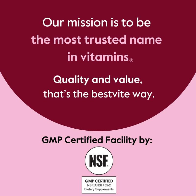 - NSF GMP CERTIFIED: Bestvite’s facility is NSF/ANSI 455-2 Dietary Supplements Good Manufacturing Practice (GMP) certified. Earning GMP certification from NSF verifies that a manufacturing facility has the proper methods, equipment, facilities, and controls in place to produce dietary supplement products.