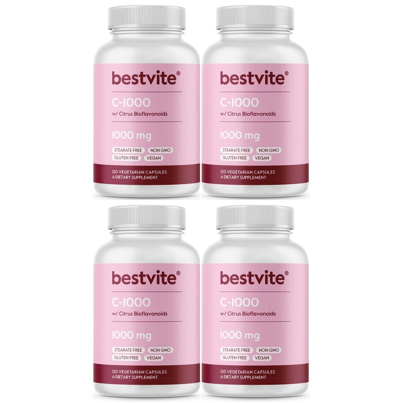 BESTVITE Vitamin C 1000mg (480 Vegetarian Capsules) (120 x 4) with Citrus Bioflavinoids - No Stearates - Vegan - Non GMO - Gluten Free