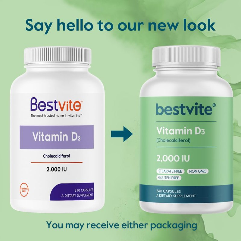 - PURE FORMULA: Bestvite Vitamin D3 contains no stearates, is non-GMO, gluten-free, and comes free of any unwanted ingredients. Each capsule contains 2,000 IU of Vitamin D3.