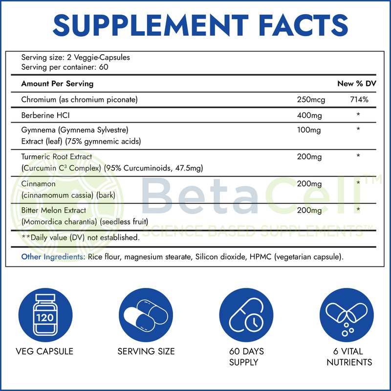 BETACELL Glucofix - Berberine Supplement - Herbal Supplement with Cinnamon, Gymnema, Berberine, Bitter Melon, and Turmeric - 120 Capsules