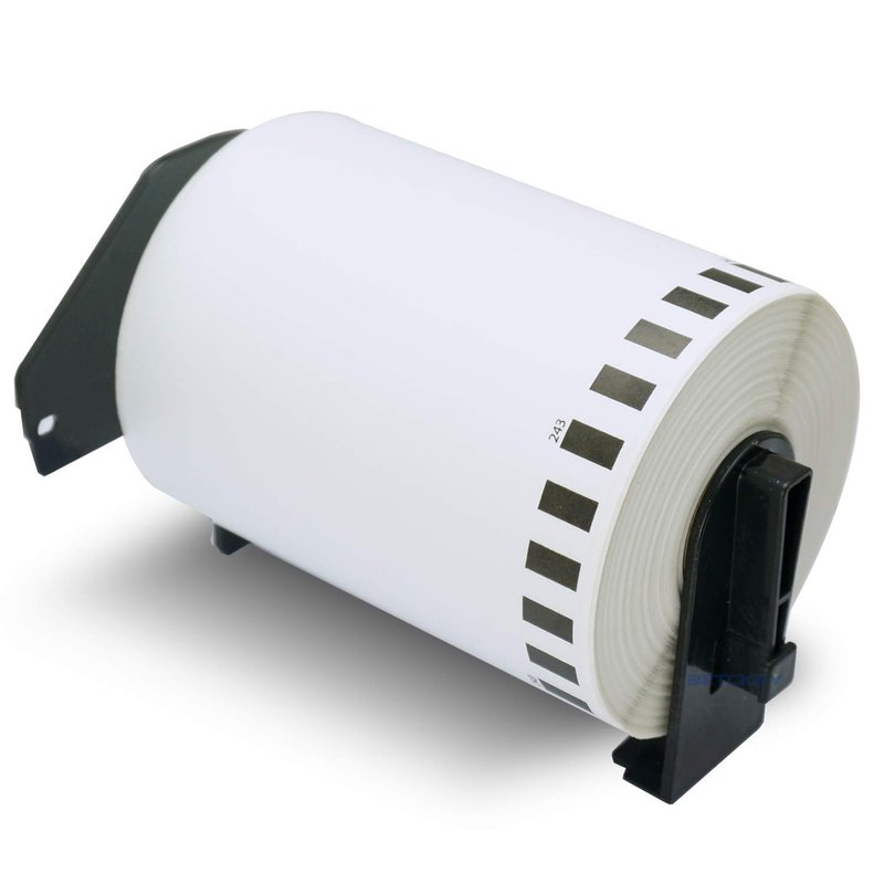 - Specification: 4" x 100' Compatible with Brother DK-2243 Continuous Length Shipping Labels, Adhesive: REMOVABLE - 1 Roll **Includes 1 Reusable holder frame**