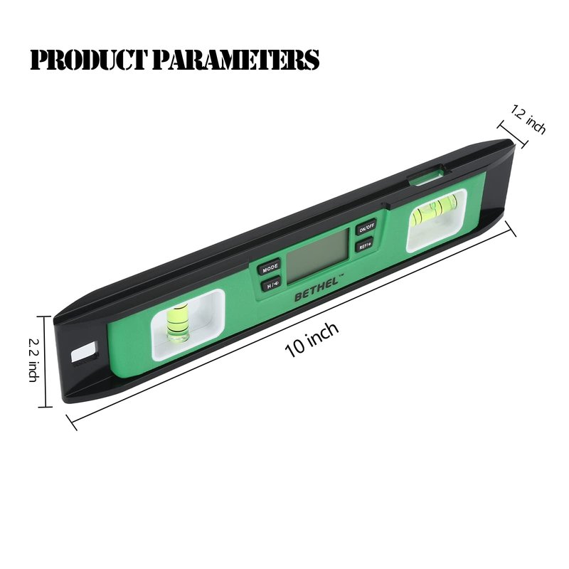 BETHEL Digital Torpedo Level -10 Inch IP54 Digital Magnetized Level Protected Electronic Bubble Inclinometer/Angle Finder/LED Display & V-Groove Base (10 Inch, Green)