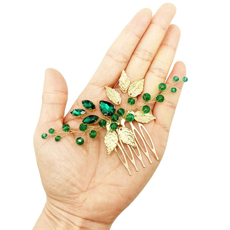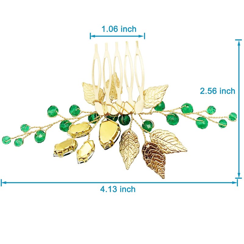- 【Color】- Gold color alloy leaves & wire & comb, with no-fade emerald green crystal, excellent workmanship, add sparkle to your hairstyle and highlight your unique feminine elegance. (Handmade item, please contact us if there is any problem)
