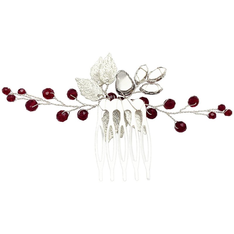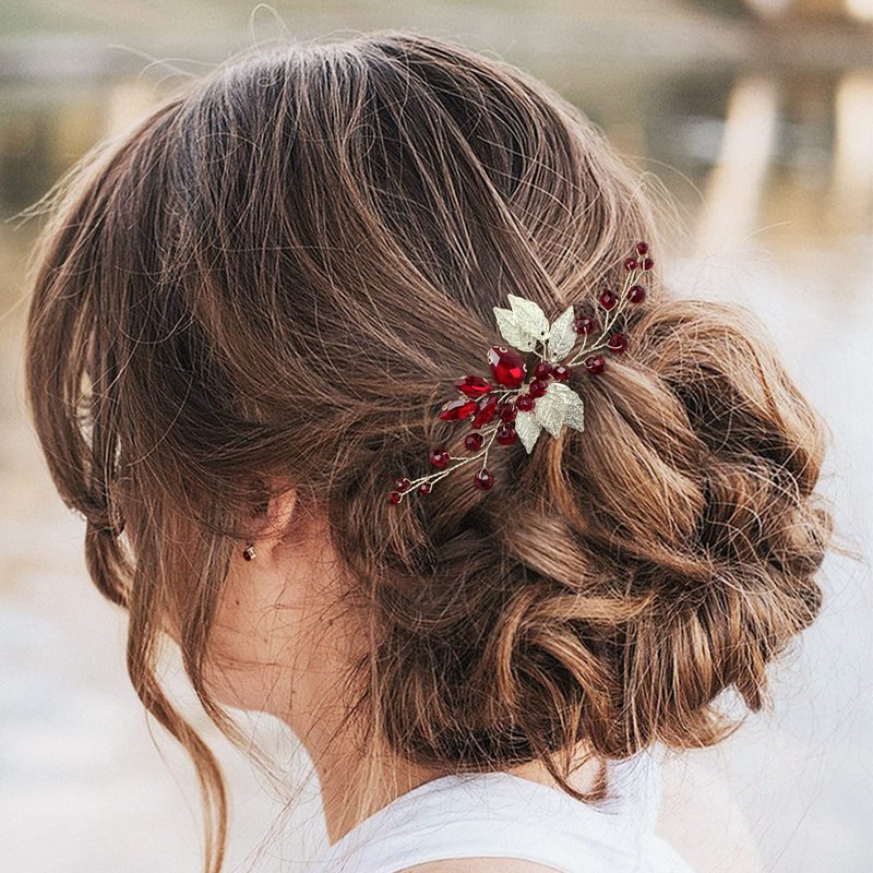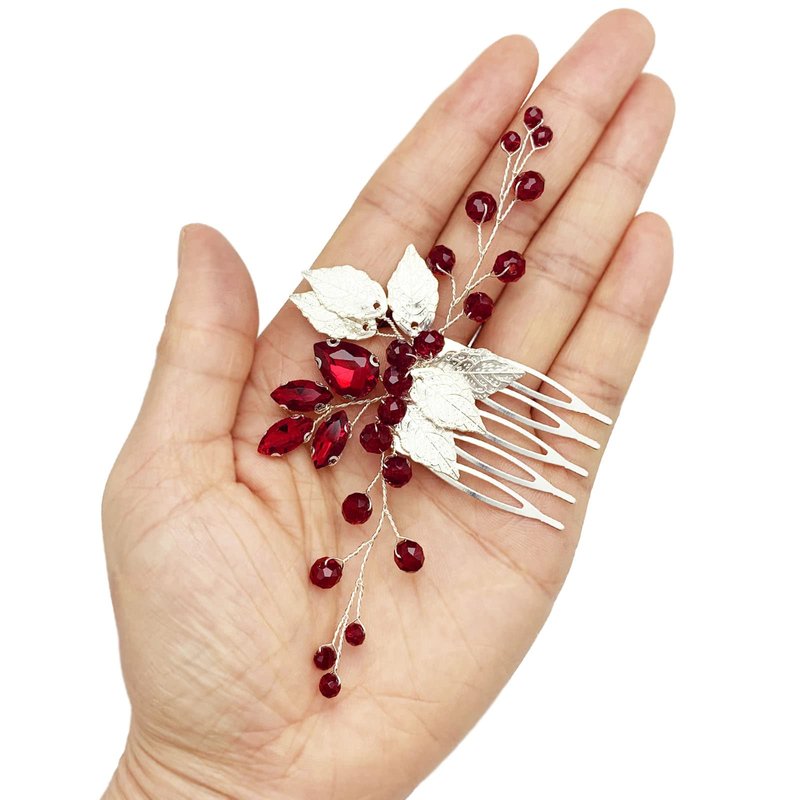 BETITETO Bridal Hair Comb Emerald Green Crystal Gold Leaf Vine Hair Piece Accessories for Wedding Bride Women Party (Wine Red)