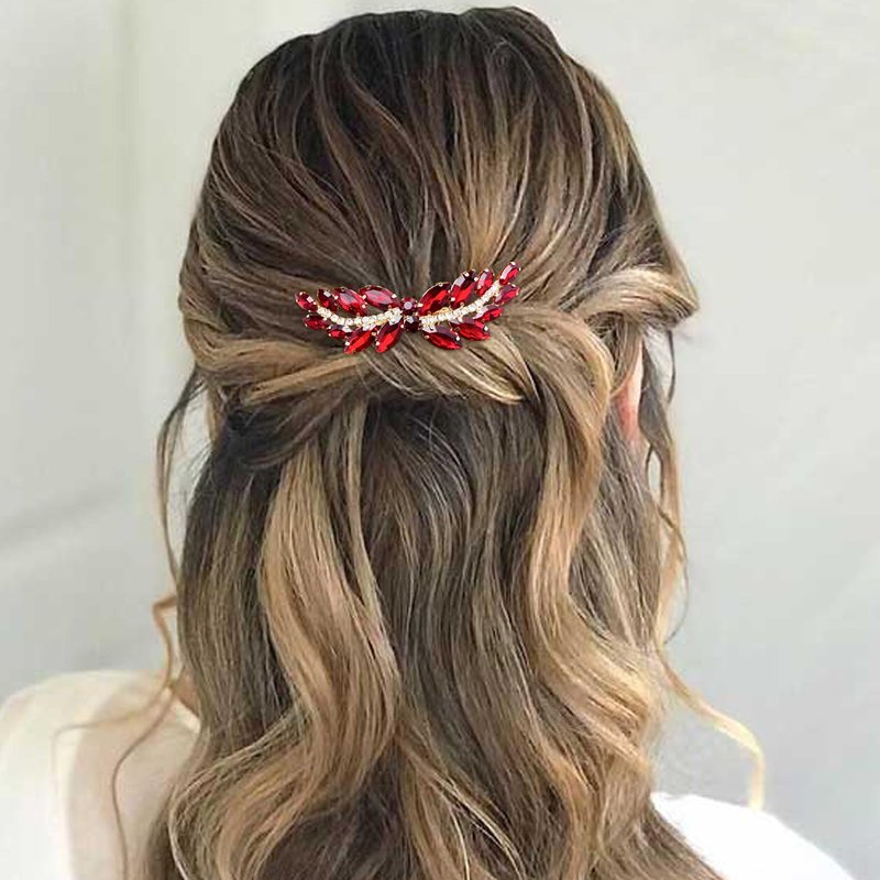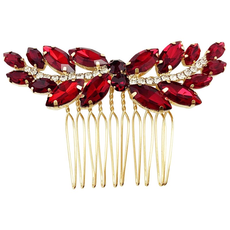 BETITETO Bridal Hair Comb Emerald Green Crystal Wedding Hair Piece Pin Accessories for Women Girls Party (Wine Red)