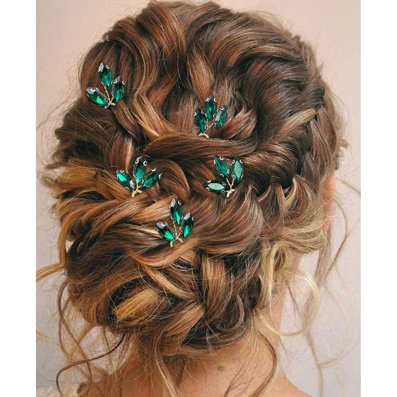 BETITETO Crystal Bridal Hair Pins Accessories 5 Pieces U-Shaped Rhinestone Headpiece for Wedding Party (Emerald Green)