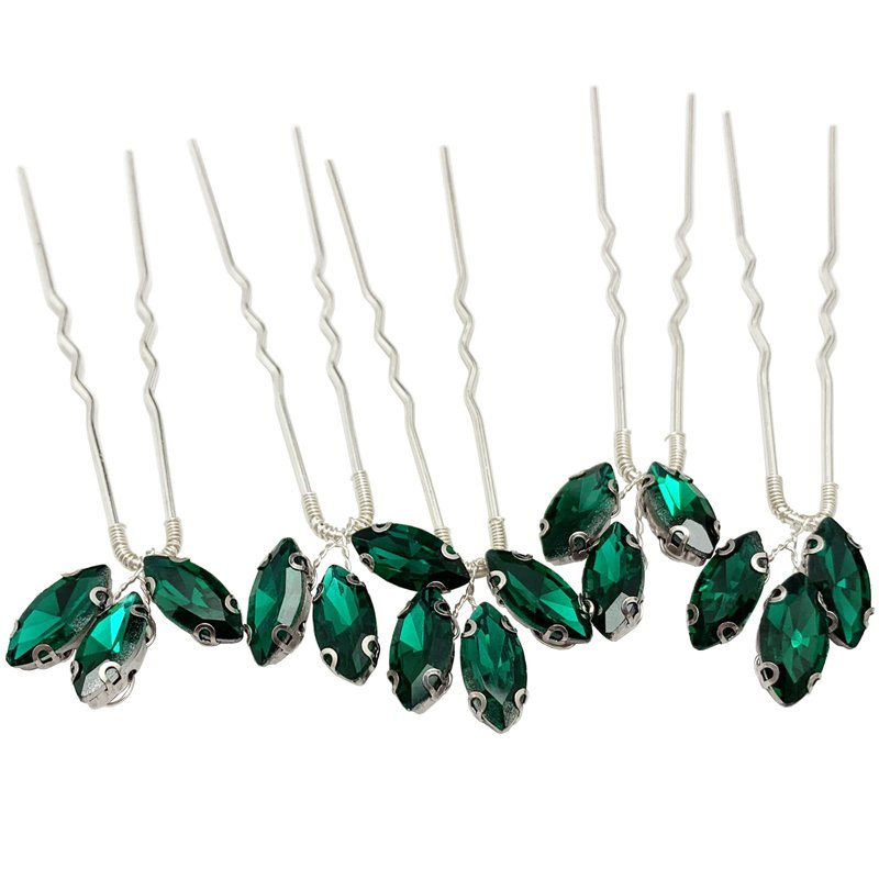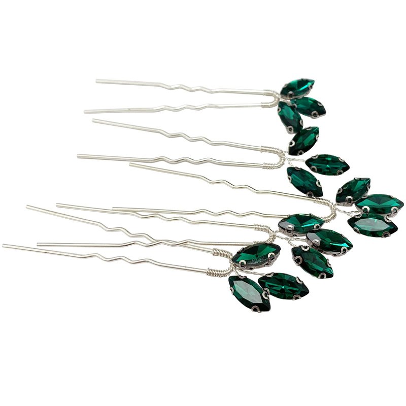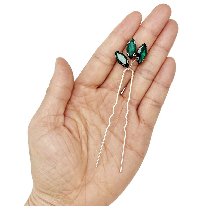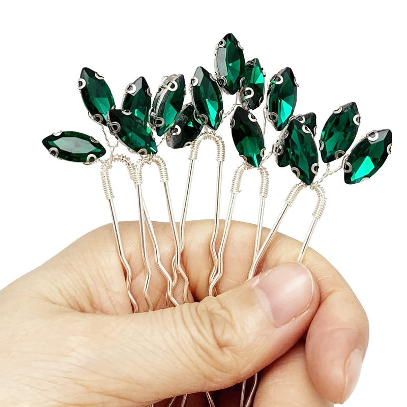 - 【Handmade Design】- These crystal wedding hair accessories are hand wired by silver color alloy wire with no-fade emerald green rhinestone onto U- shaped pins, easy to wear, good assistant for your make up and easy to DIY your own hairstyle