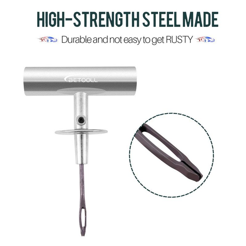 - PLUG AND GO--- “T”handle is made of heavy steel, provides more steering power to insert the tire, making it easy to repair any tube-less tire perforations anytime, anywhere.