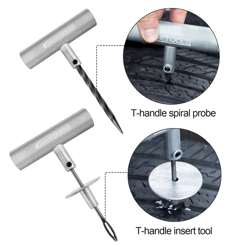 - PLUG AND GO: “T”handle is made of heavy steel, provides more steering power to insert the tire, making it easy to repair any tube-less tire perforations anytime, anywhere.