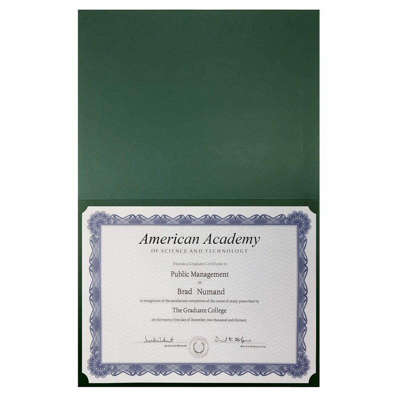- BULK QUANTITY: 25 green folding certificate holders