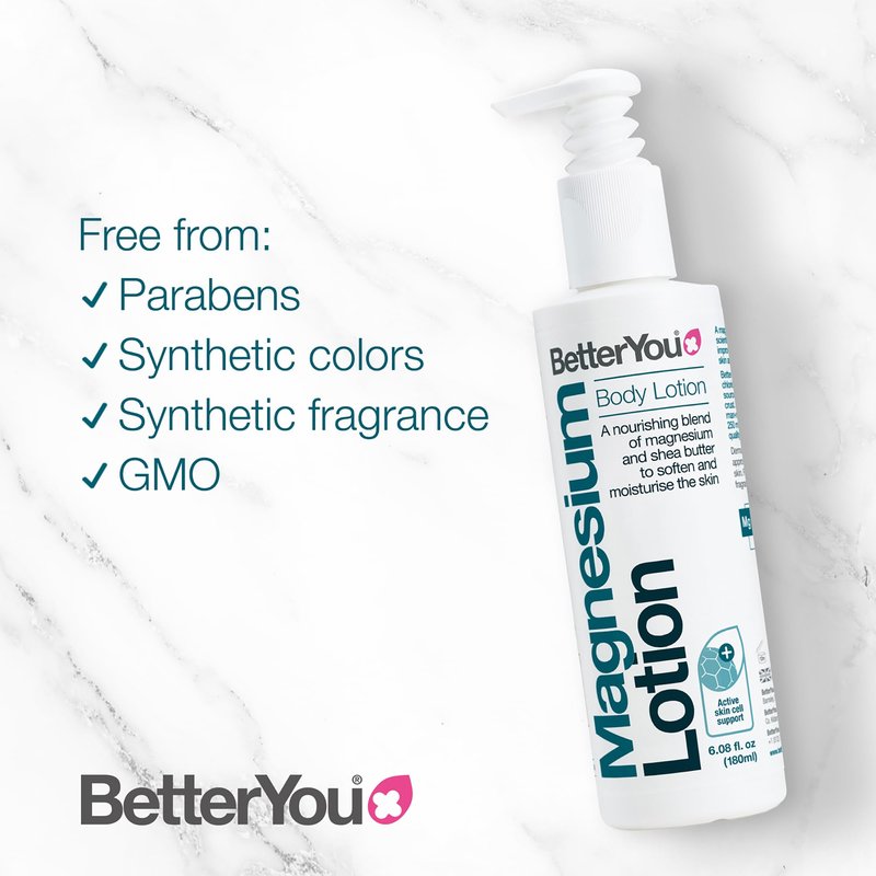 - PROMOTES HEALTHY, GLOWING SKIN. BetterYou Magnesium Body Lotion is a nourishing blend of natural Magnesium Chloride and soothing Shea Butter, formulated to improve skin elasticity, soften skin and relax muscles when topically applied.