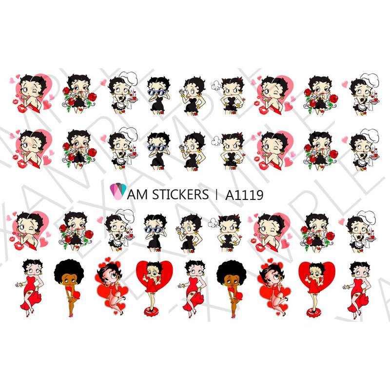 Betty Boop Water Nail Art Transfers Stickers Decals - Set of 36 - A1119