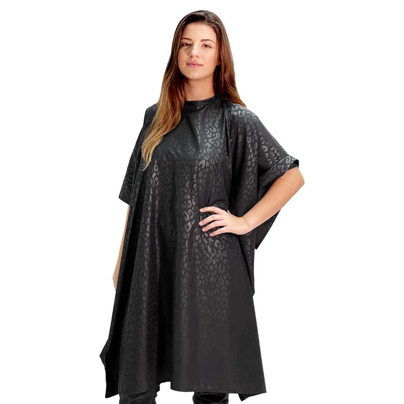 Betty Dain Black Jaguar Bleach-proof All Purpose Styling Cape, Material Defends Against Bleach Stains, Color Proof, Chemical Proof, Waterproof, Lightweight Embossed Nylon, Black