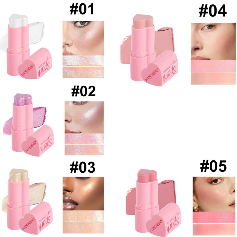 - Multiple color choices: 8 color choices, 01,02,03 color is highlight,while the rest of the colors can be used for blush and contouring,love heart shape design, fashion, novel, rotating telescopic design, very easy to use, completely suitable for you to create your own unique,cream blush stick can be gently applied to the skin, can be used as eye shadow, lipstick, blush three cosmetics.