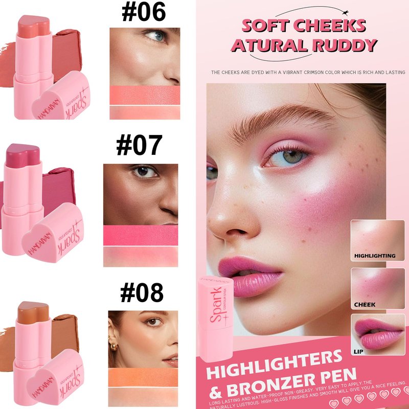 - Formulation: Cruelty-free,paraben-free and gluten-free formula,the 01,02,03 highlight stick color provides a shimmering finish for both lips and cheeks,blush stick can stay for a long time, when you do not need, you can use make-up remover, you can get rid of the perfect.