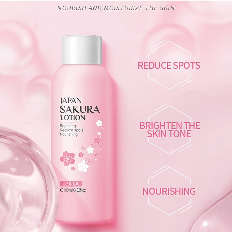 - The sakura lotion is rich in prunus lannesiana flower extract and niacinamide, which can repair the damaged skin and improving skin tone.