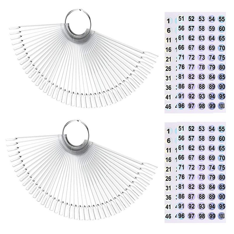 - 2 Sets of totaling 100 pieces sector fan boards with detachable ring holder - 100 pieces transparent. 8mm number stickers included, you can mark color's name on the sticks.