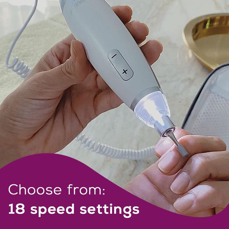 - PRECISE FILING: The integrated LED-light enables a more refined finish by illuminating the nail area – while the dust shield keeps your manicure and pedicure hygienic and mess-free
