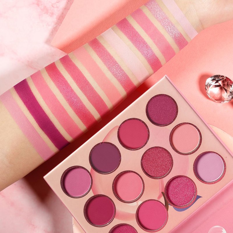 12 colors pink eyeshadow would leaves you with a matte finish and refines pores,silty fine docile,not flying powder,easy to color.Create the sweetest looks with a mix of metallic and matte shadows perfect for your everyday look.