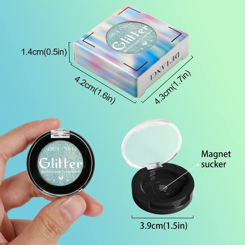 Feature: Portable size, lightweight, easy to carry. Highly pigmented glow glitter eye shadow powder. Suitable for party, T-show, dance and other occasions. Fine powder, easy to apply, easy to apply makeup. Deepen the outline, it is not easy to take off makeup, and create a natural makeup in one stroke, showing beauty. The glitter eyeshadow and highlighter palette is great ideal for brightening cheekbones, eyelids, brow bones, inner corners and lip, look great on any skin tone. This is a colorful eye shadow, which has a strong flash discoloration effect, anti-wrinkle, anti-transfer and anti-peeling characteristics, and the metallic eye shadow can last all day.