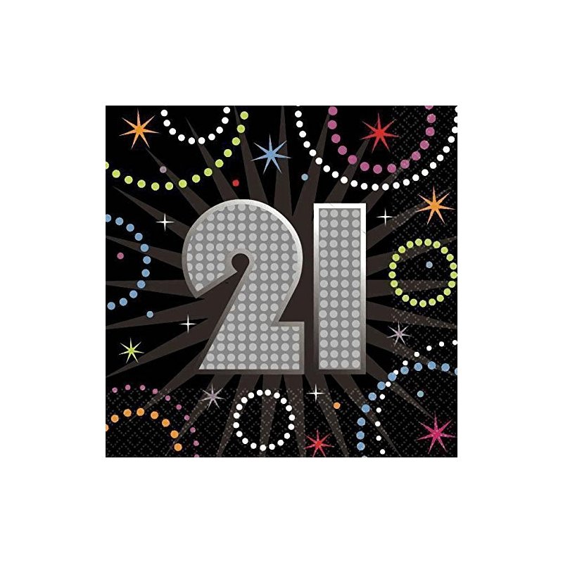 Our Time To Party 21 Beverage Napkins are perfect for any 21st birthday celebration! Features a black napkin with a colorful dot and swirl design and the number "21". Measures 5" x 5". Includes 16 - 2 ply napkins per package.
