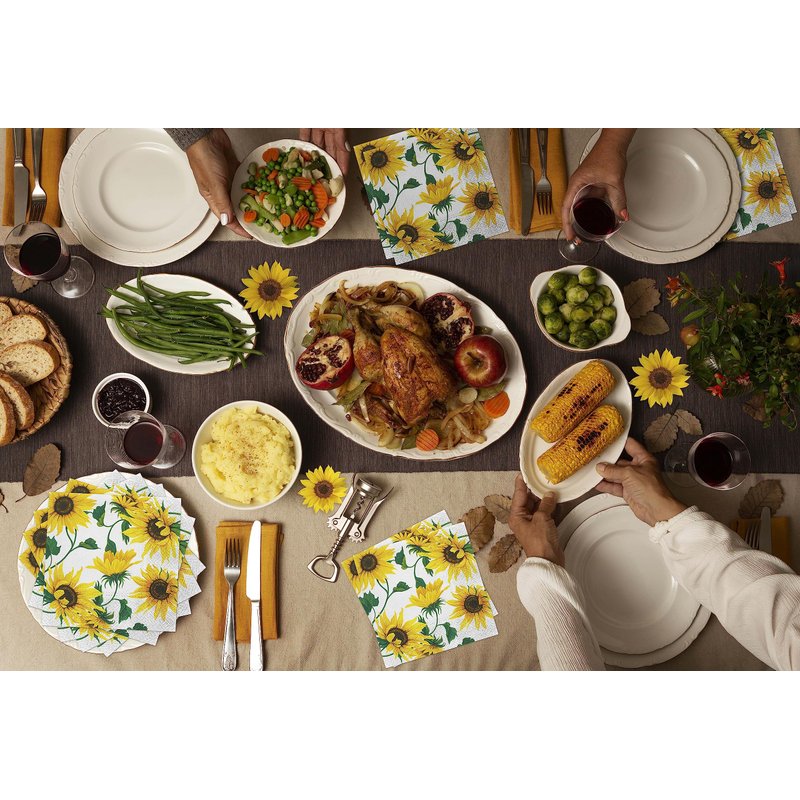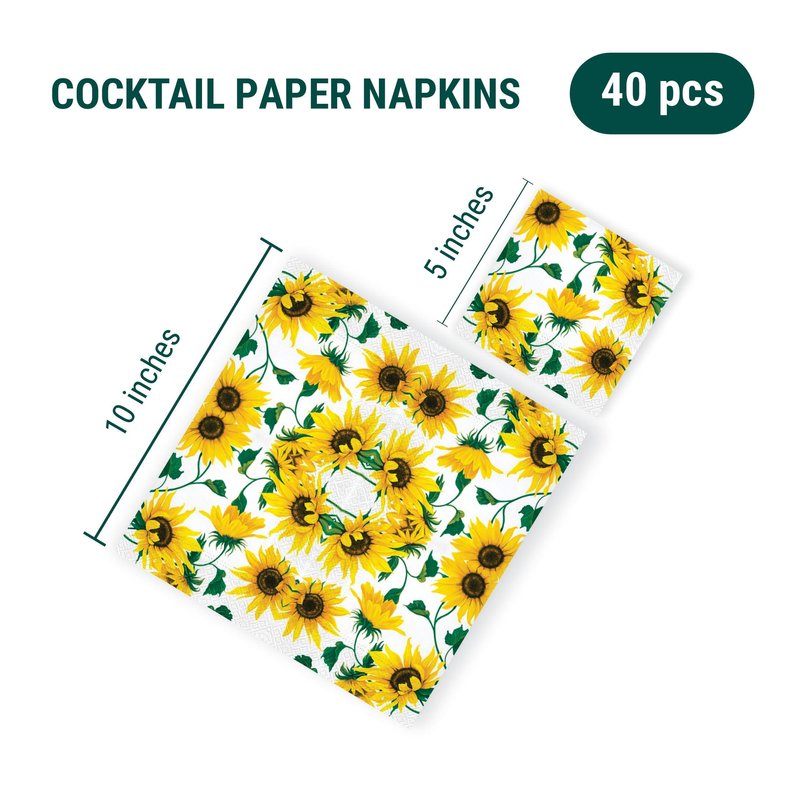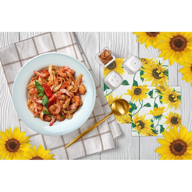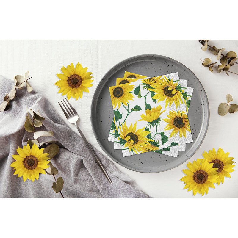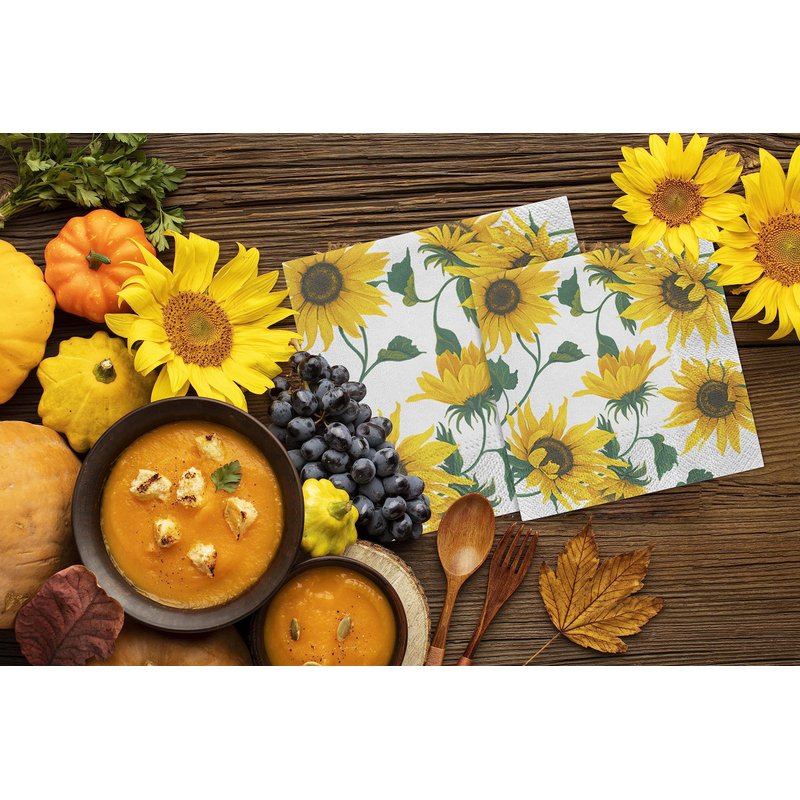 Beverage Napkins SUNFLOWERS ON WHITE 40pcs 5x5 Paper Cocktail Napkins, Sunflower Napkins, Fall Napkins, Thanksgiving Paper Napkins, Decorative Napkins for Decoupage, Thanksgiving Cocktail Napkins