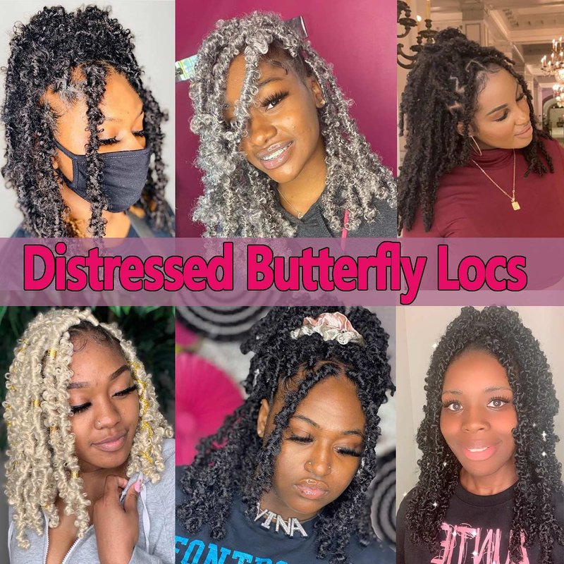 - Hair advantages: 100% Hand-Made Distressed Butterfly locs Crochet Hair, No Smell, Lightweight, Natural & Stylish Looking,Tangle-free; Shedding-free,More Durable, Pre looped and Pre-Twisted, Easy to Install and style, save your Money and Time.