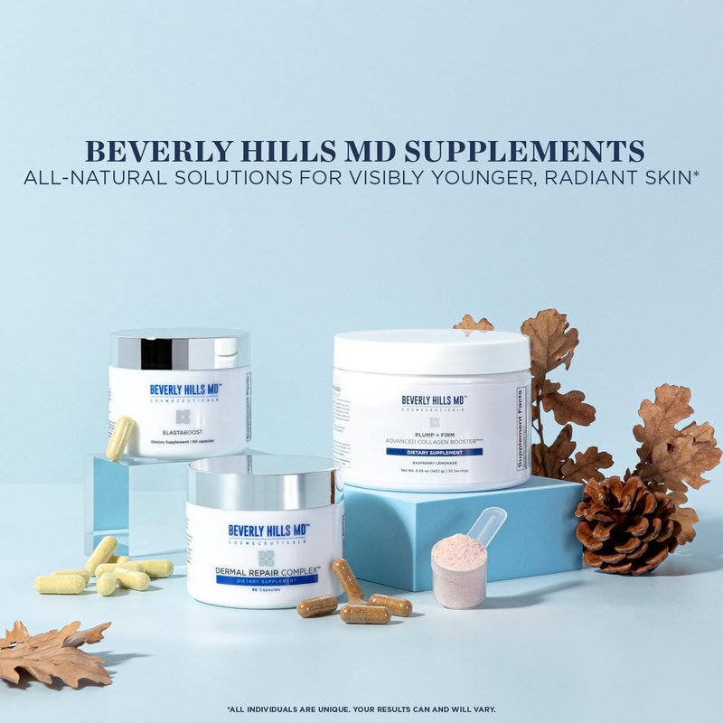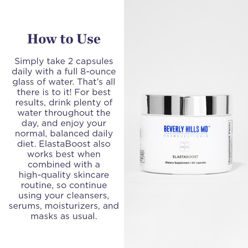 Beverly Hills MD Elastaboost Dietary Supplements for Aging Skin- Elastin Supporting Formula for Lifted, Firmer, Skin w/Hydrolyzed Elastin, Hyaluronic Acid, Vitamin C, Phytoceramides (60 Capsules)