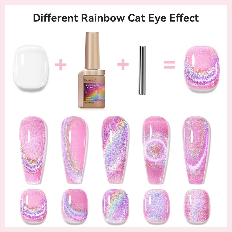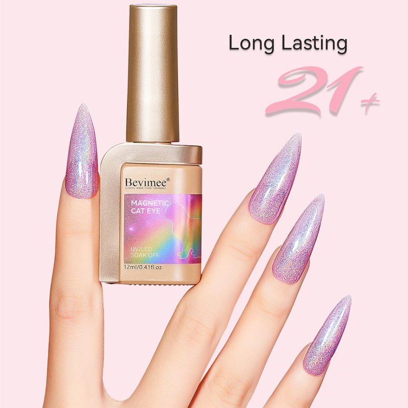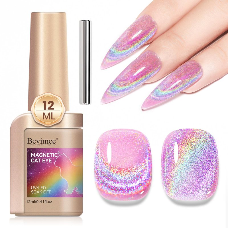 - 【Non Toxic & Healthy】 Bevimee holographic cat eye gel polish is made of natural resin with environmentally friendly ingredients, cruetly-free, low-odor, non-toxic, and dose not harm your nails and skin. The iridescent shiny gel nail is the ideal gift for your girlfriends and mom.