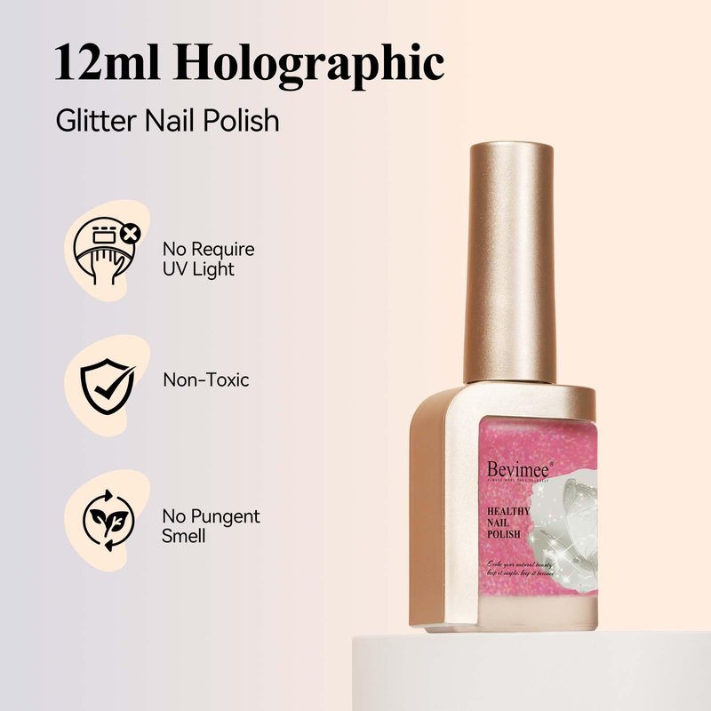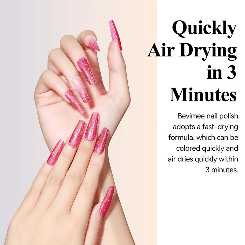 - Non Toxic and Healthy: Bevimee glitter nail polish is made of natural resin with environmentally friendly ingredients, cruelty-free, low-odor, non-toxic, and dose not harm your nails and skin