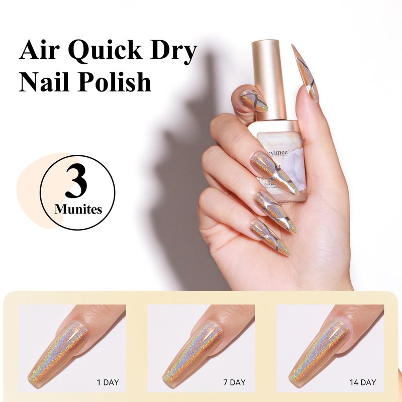 - 【Quick Dry Holographic Nail Polish】 Bevimee iridescent nail polish adopts a fast-drying formula, which can be colored quickly and air dries quickly within 3 minutes. The holographic nail polish does not require any other tools such as UV lamps. You can get the desired manicure effect in a few minutes, which is efficient and convenient.