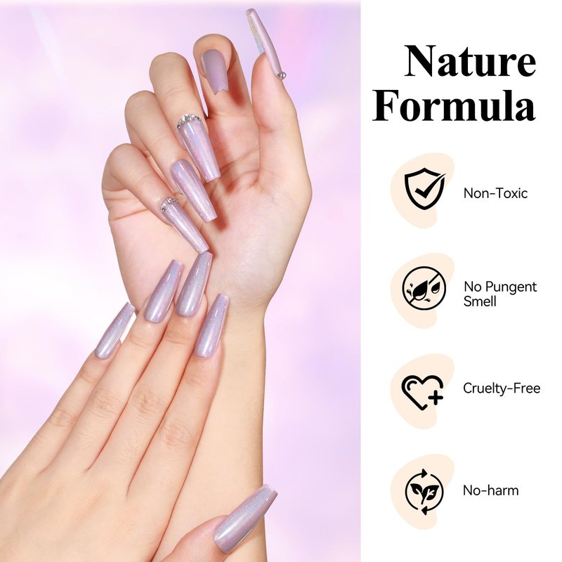 - 【Non Toxic & Healthy】Bevimee holographic nail lacquer polish is made of natural ingredients, healthy, non-toxic formula and Cruelty Free, The holographic nail polish won't harm your nails and skin, slight odor is normal.